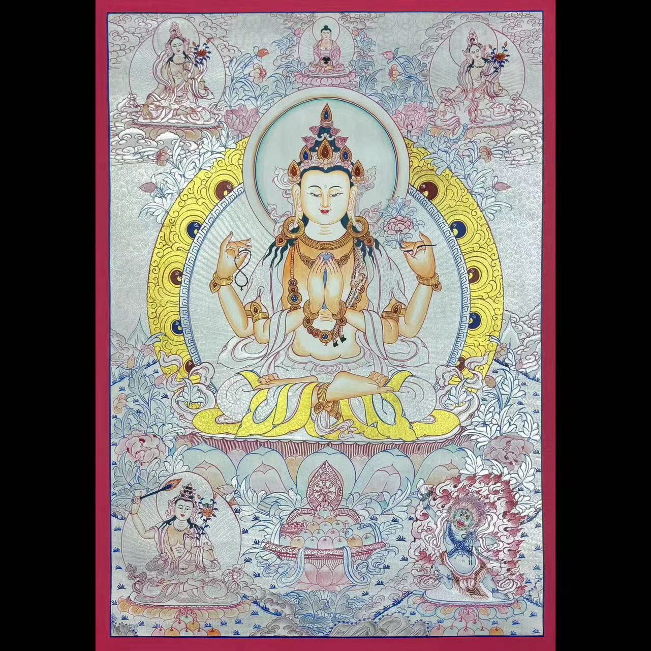 【t1517】精品24k金Pravin lama修行绘制【六臂白玛哈嘎拉】