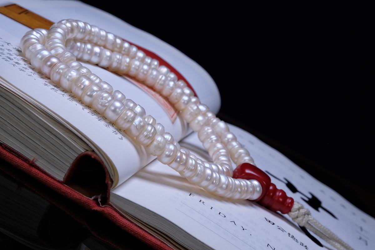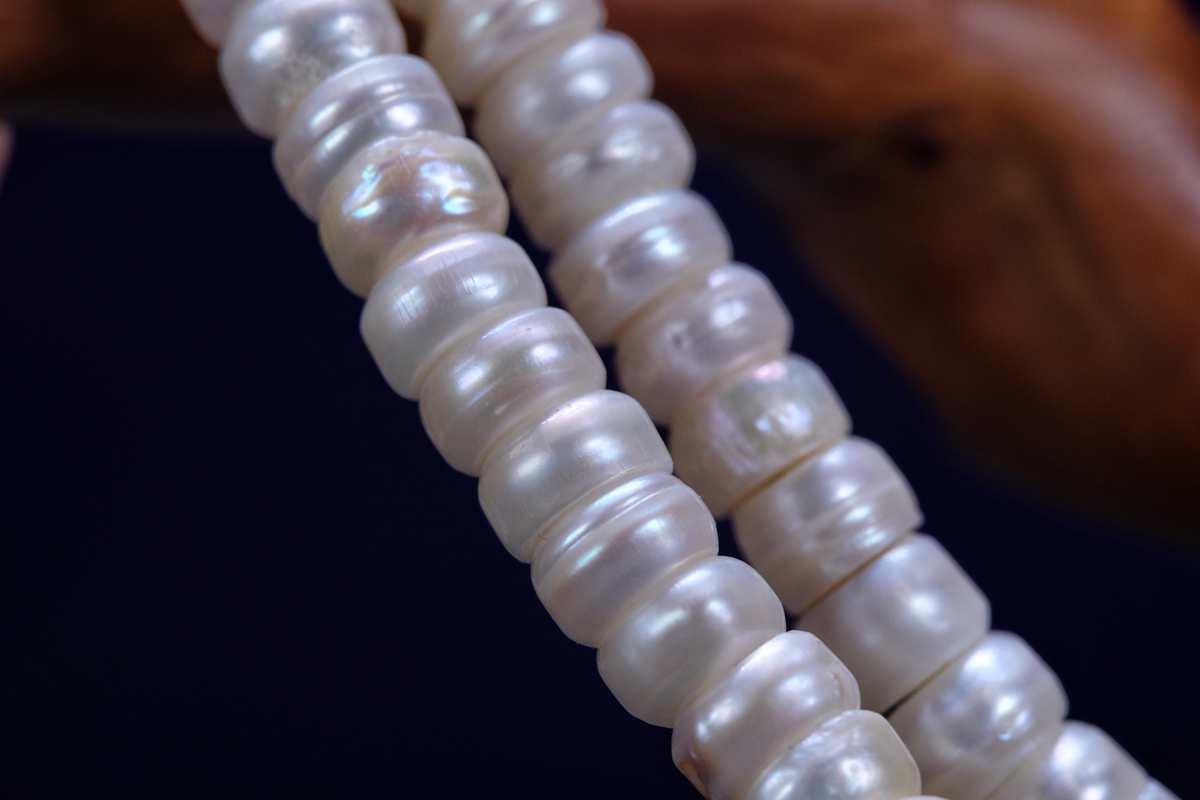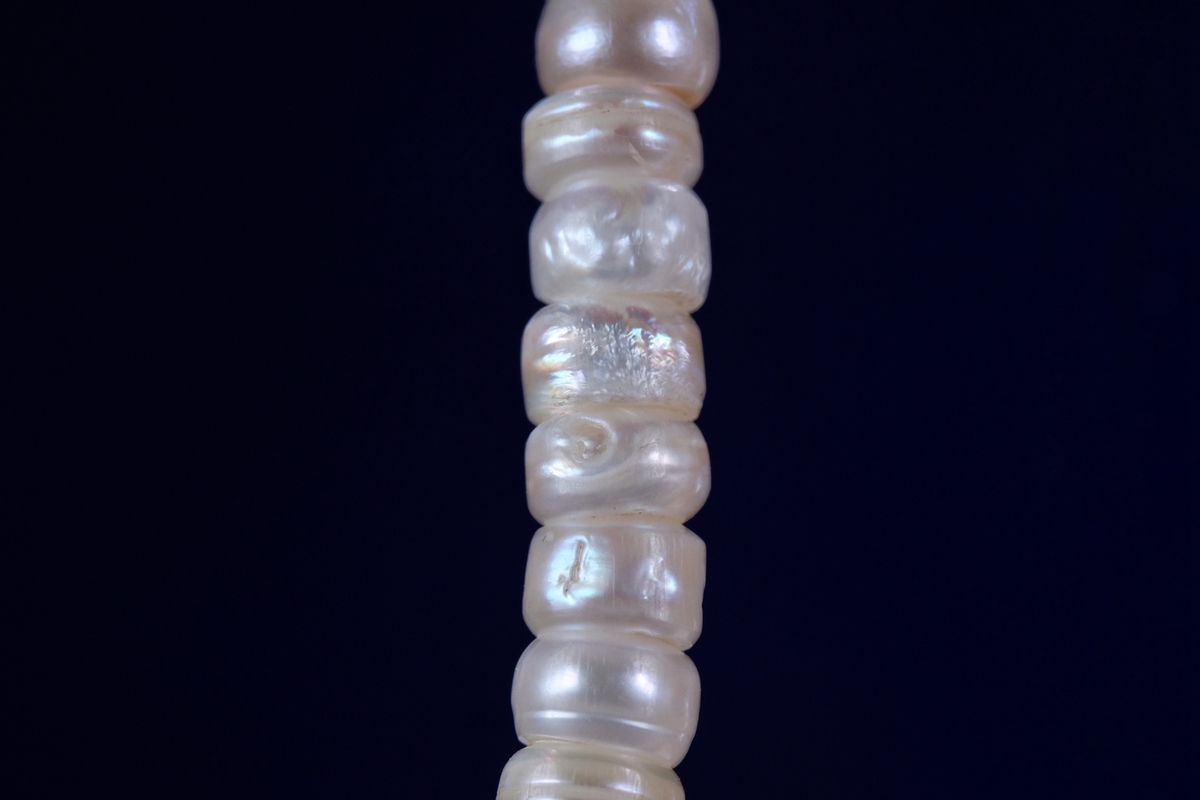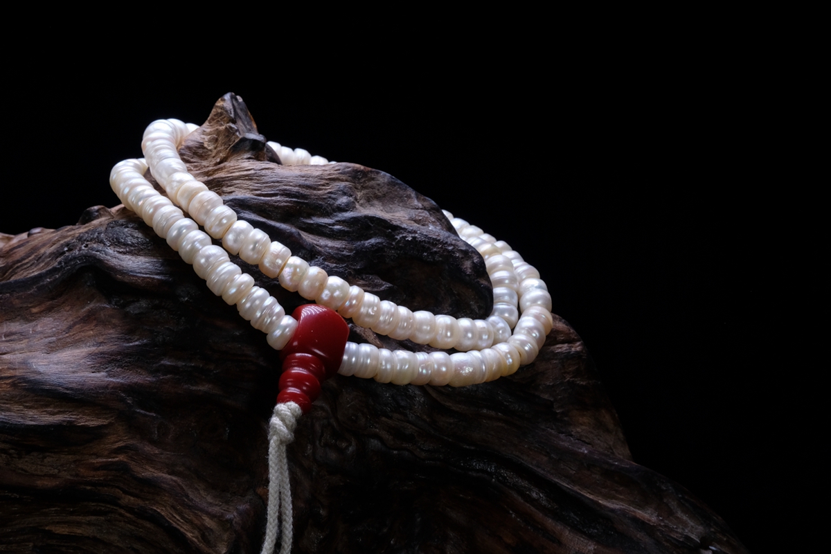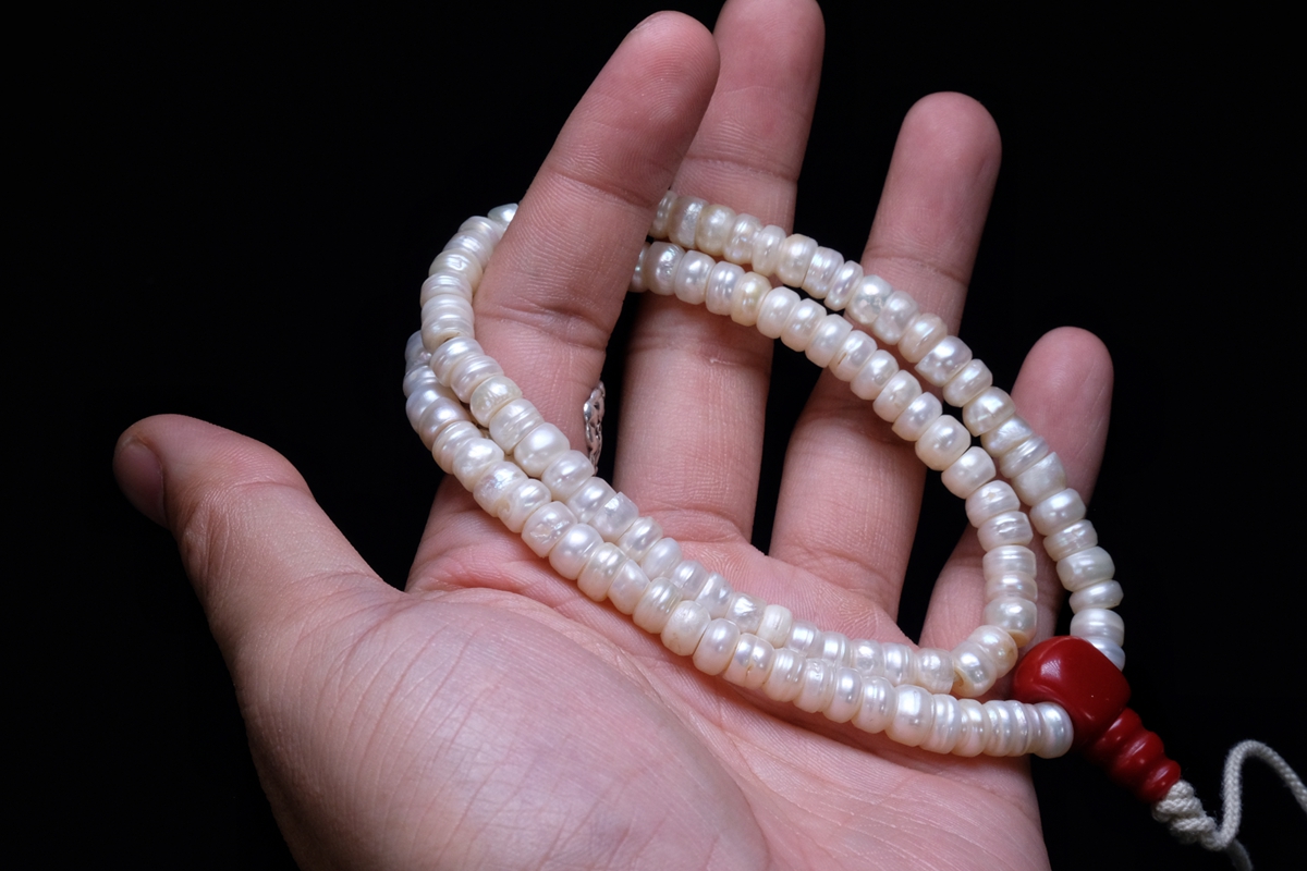 介绍:原生态,直切老珍珠,随形质感,每一颗蛤蛎光都很明显。颗颗原配全品相,光气非常不错。三通老料器红蜡材质。颗做念珠可做手链,就算拆单圈也很好看!