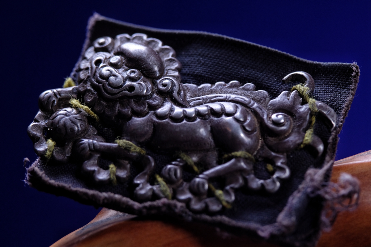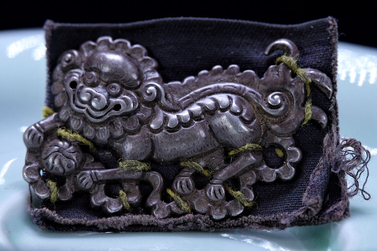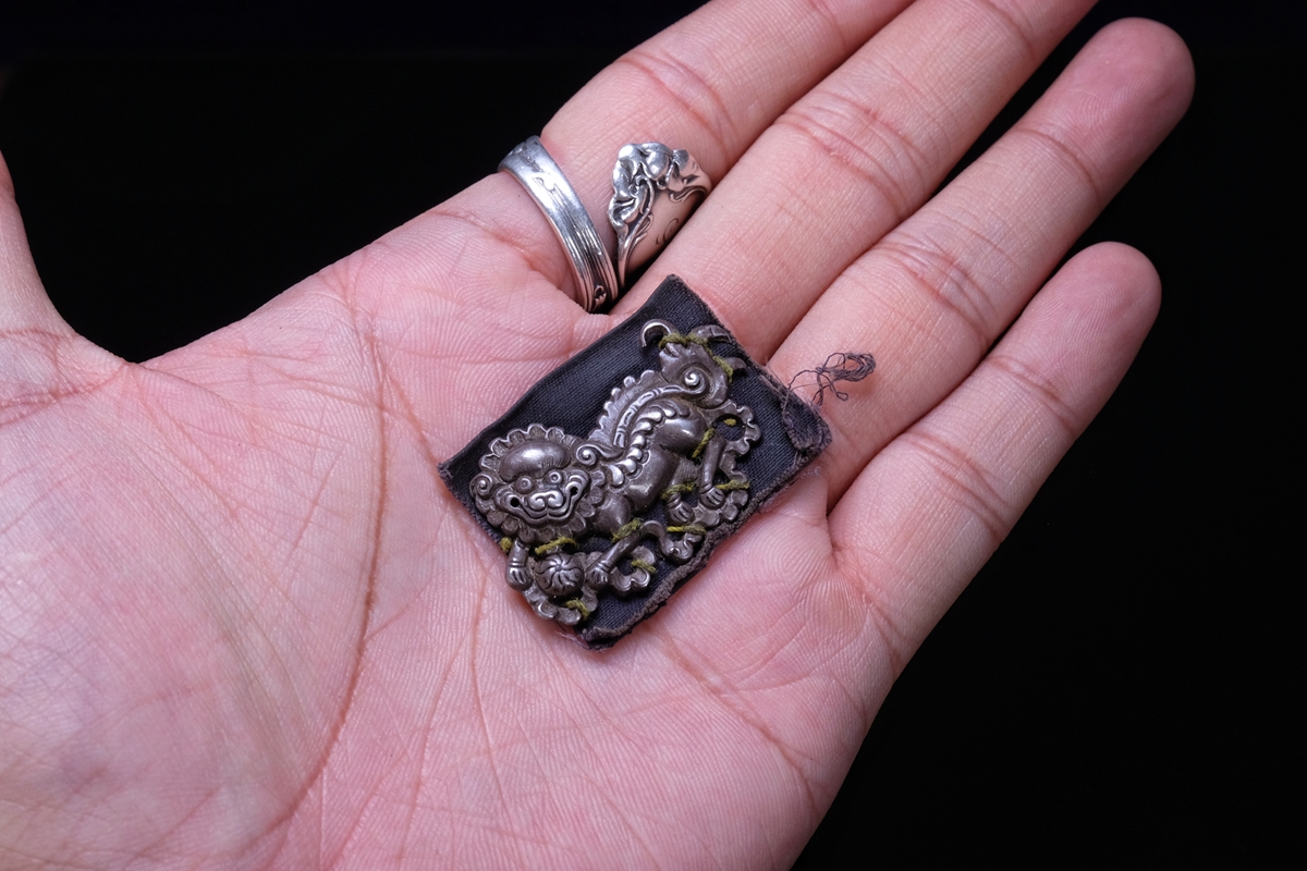 【XQ1726】清代纯银錾刻|雪狮浮雕小件