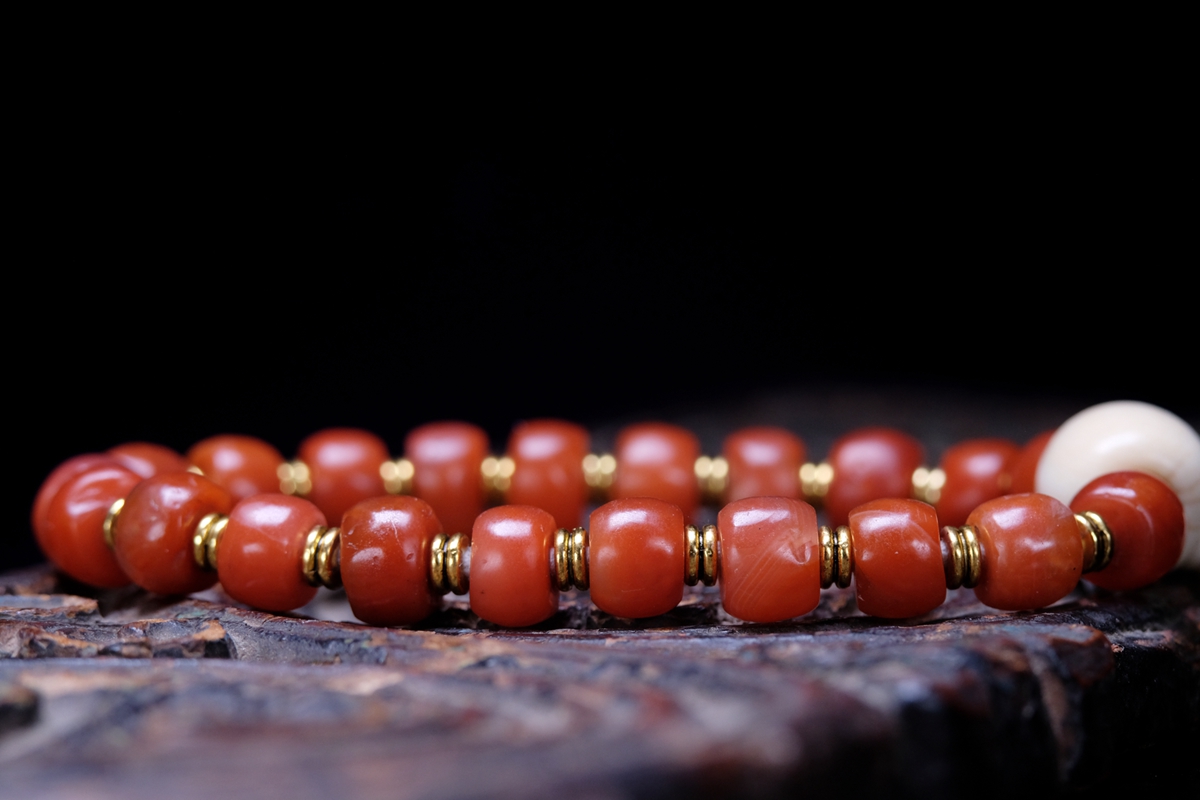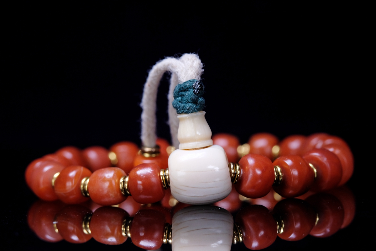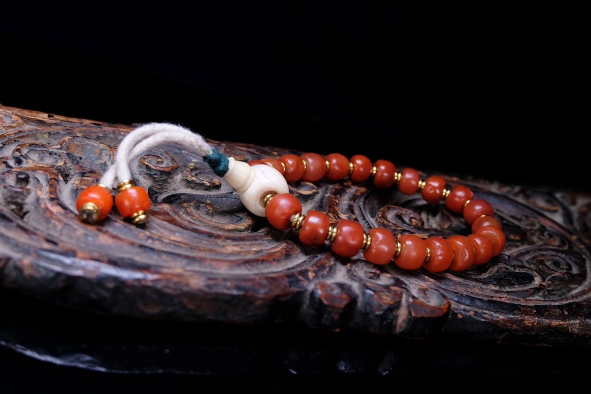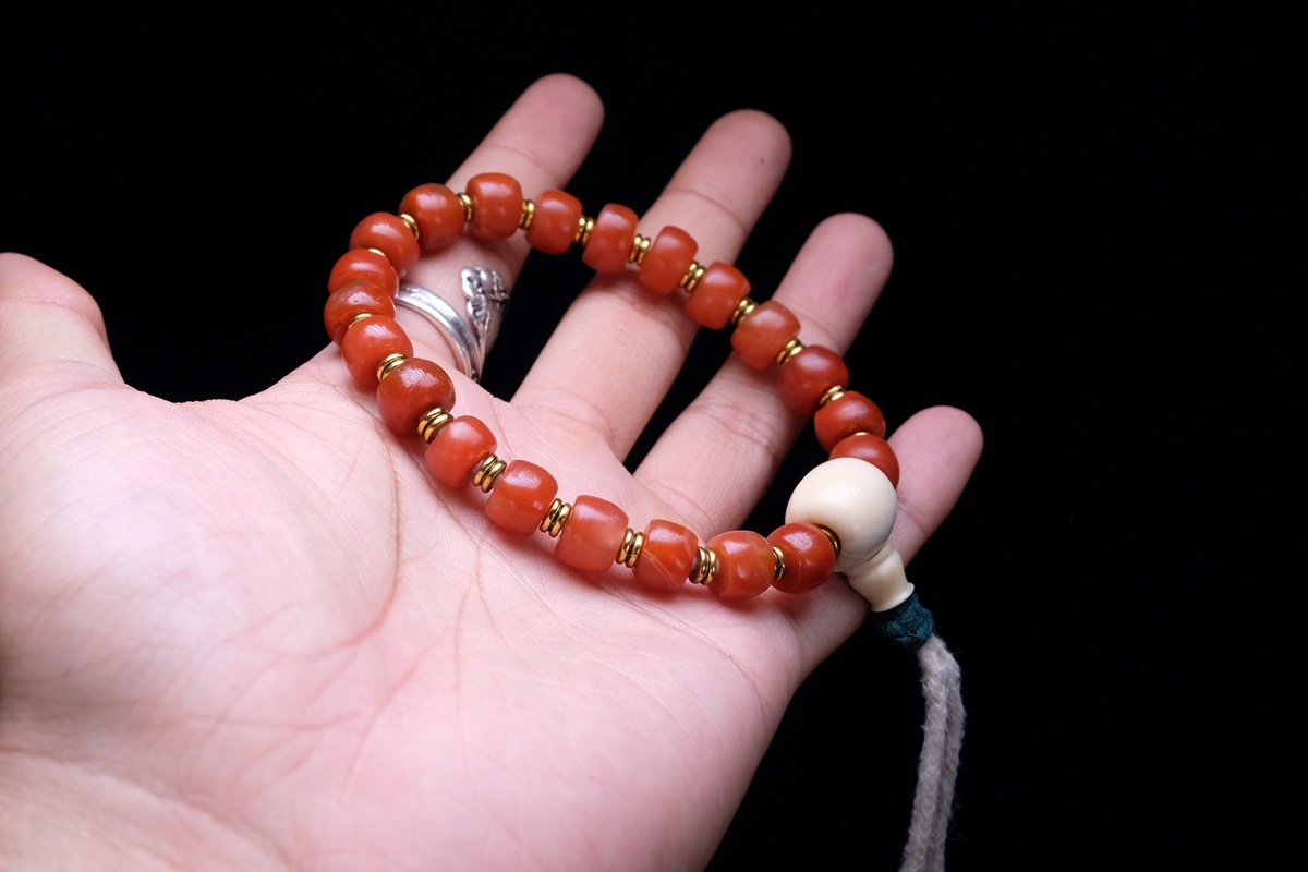 介绍:不足数老念珠精挑改手串,每一颗都不带白裂,只选了最好的料子,颗颗满色满肉,无磕碰,无瑕疵。有非常轻微的上色差,不仔细看看不出来。三通小年份一体短毛牙制,料子也是非常细腻,全品。