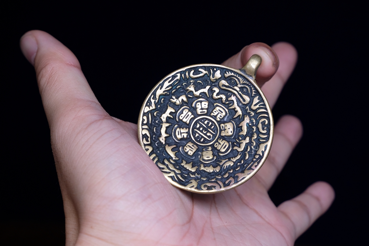 介绍:给我一个拒绝这枚九宫的理由?这模版,这做工,这用料,需要介绍么?实物磨损、包浆都可以说是教科书级别。版面干干净净,标准的头版头模才能拥有的立体感和图腾深度。绝对够你毕业的一枚!