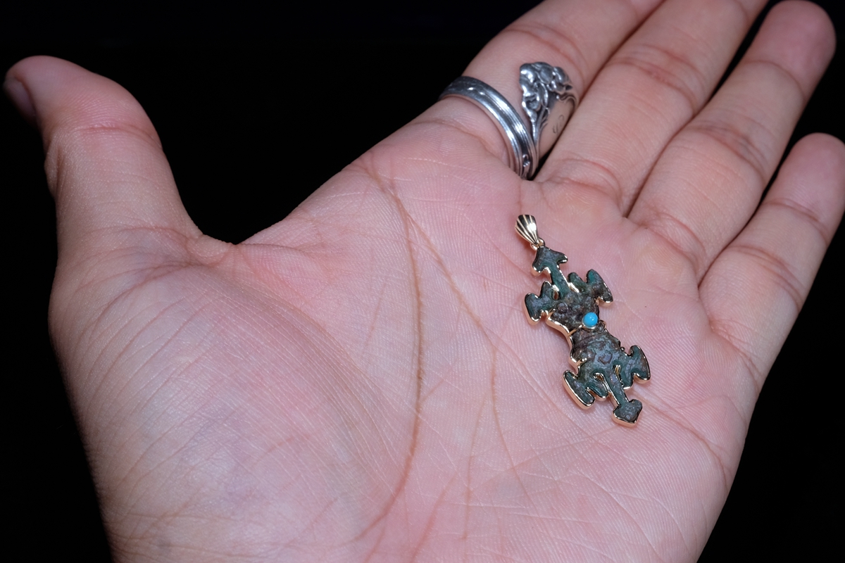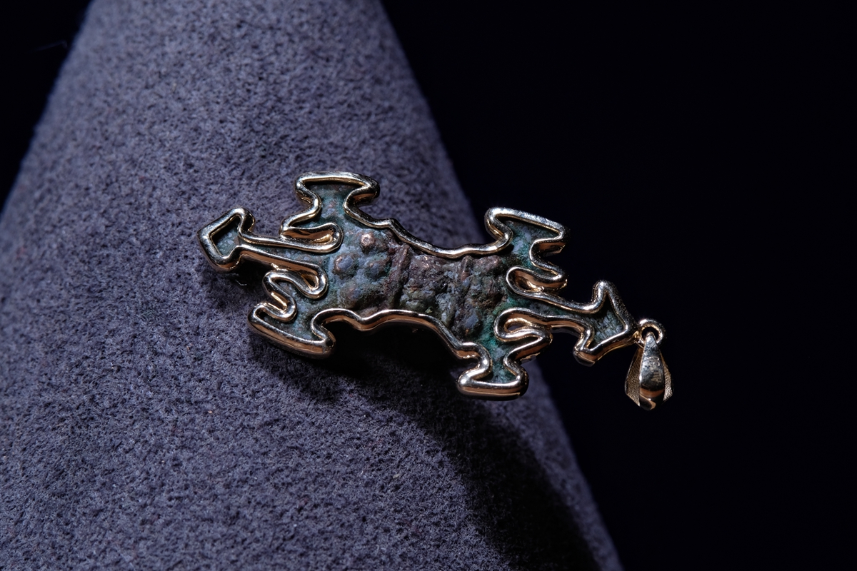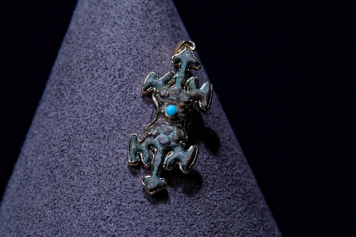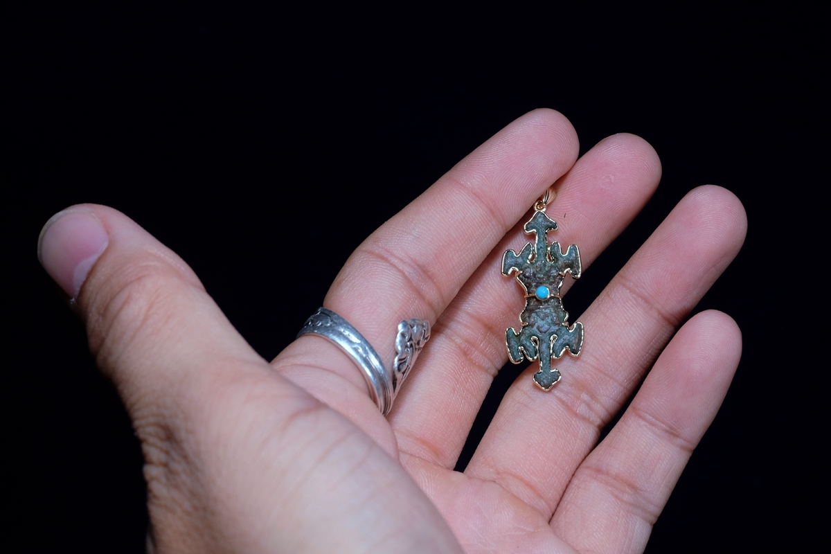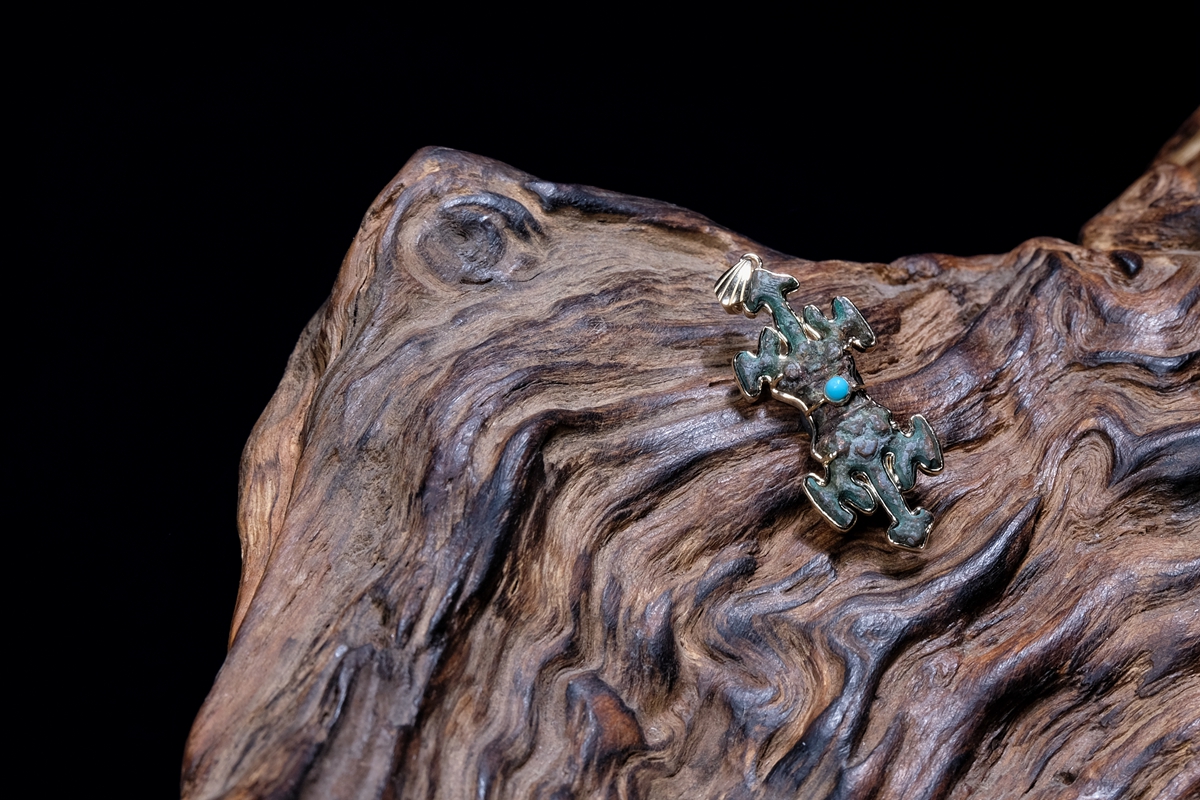 介绍:西夏的实修法器可能一些拍场和博物馆都能见到,但是这么精致的西夏小杵真的是仅见过这一枚。而且品相历经千年可谓奇迹般地完好,毕竟青铜本身较脆,加上这枚如此的细致,能保存至今实属难得。整体器型和材质、状态都是开门的西夏遗存,绝对到代。通体手工9k包金,正面镶嵌一枚绿松石作为点缀。尺寸不大,绝对精品!