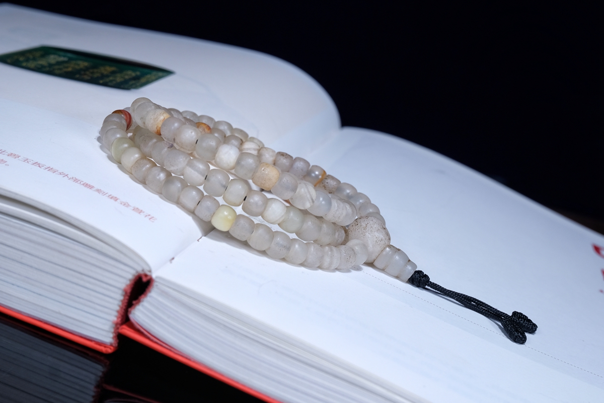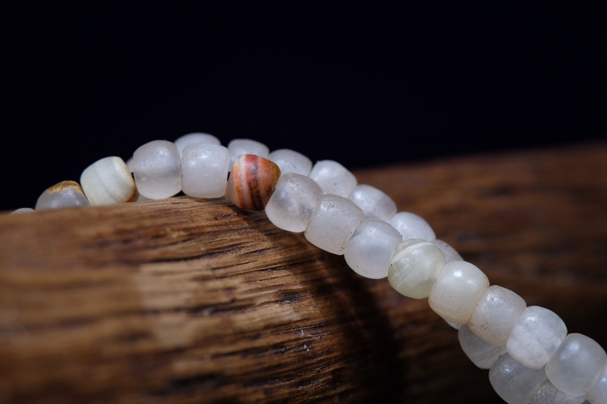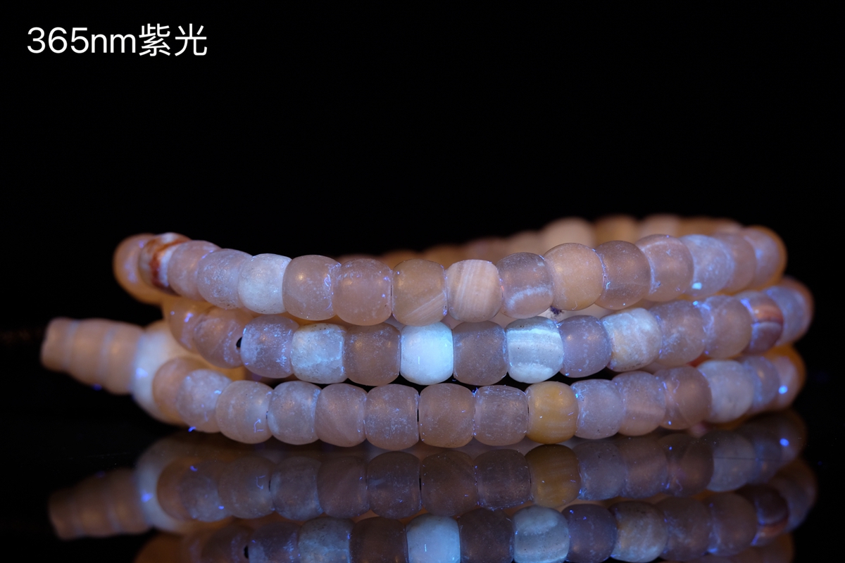 介绍:影舍利不了解的自己可以搜一下,材质就是玛瑙,出现和历代灭佛有比较大的关系,文化价值比材质本身高得多。而且影舍利本身选用的玛瑙材质也都很不错。之前有收到过一条,规整度这条绝对完胜。无论是实物的磨损、风化,还是紫光下的内沁,都绝对开门到代。珠形还是现在很流行的老型质感,也是比较难得的。每一颗都是全品相,无瑕疵,三通也是同料原配。下次再遇到就不知道什么时候了,自己把握吧!