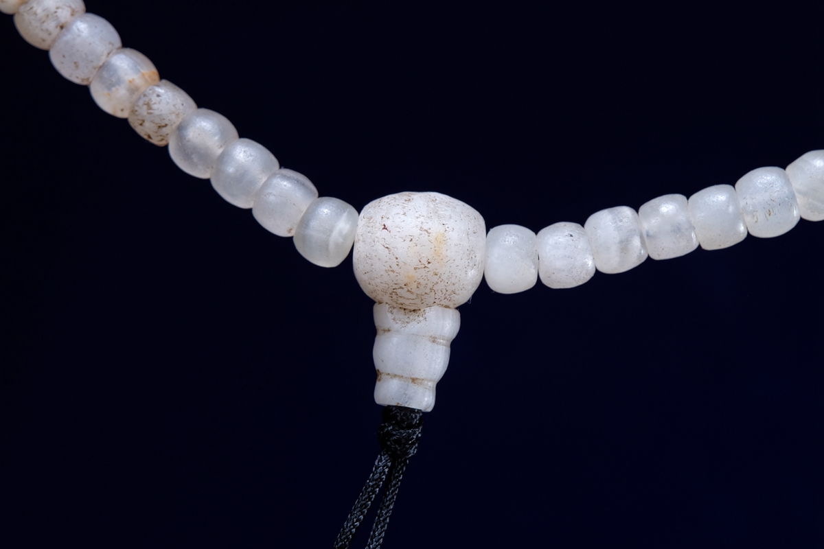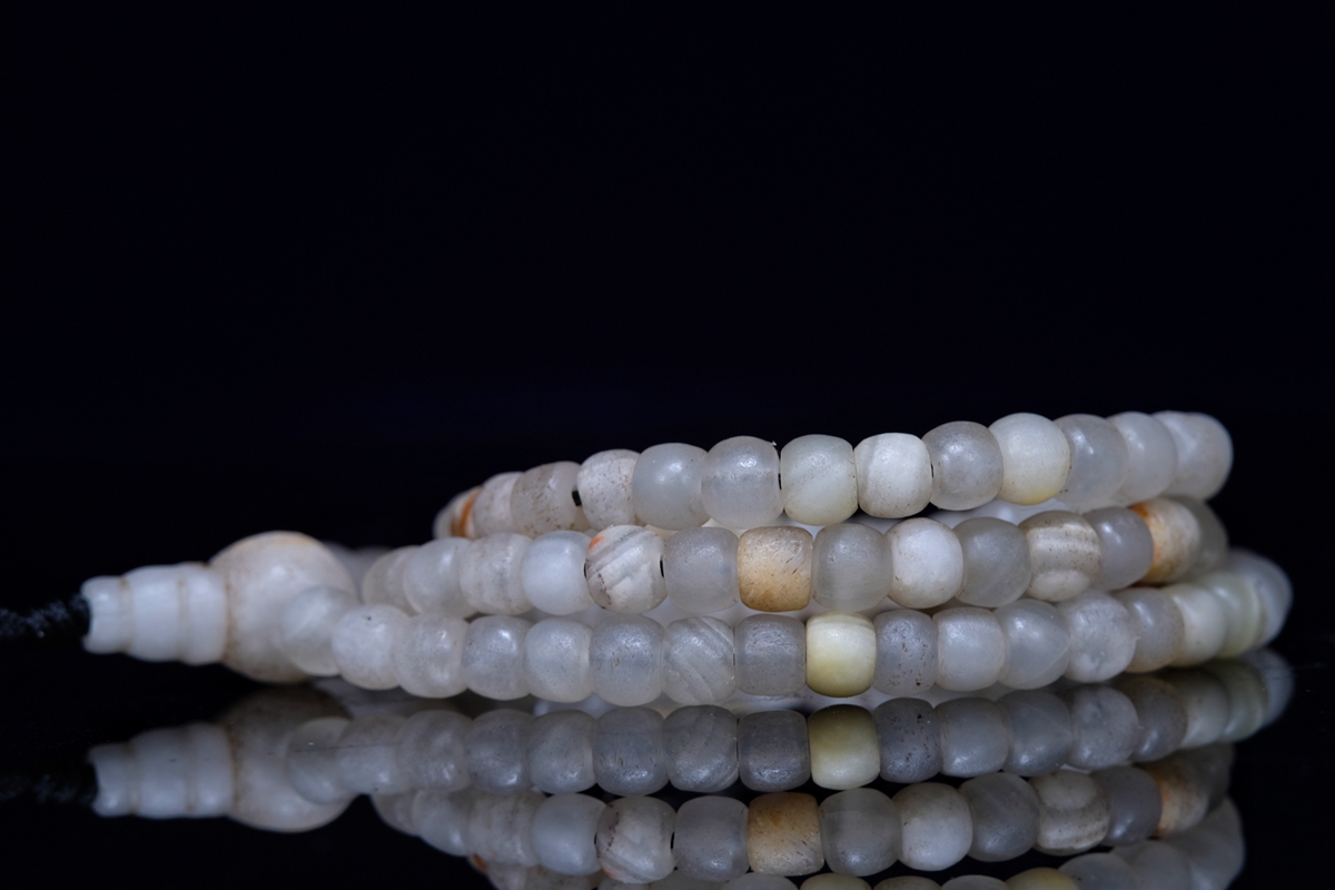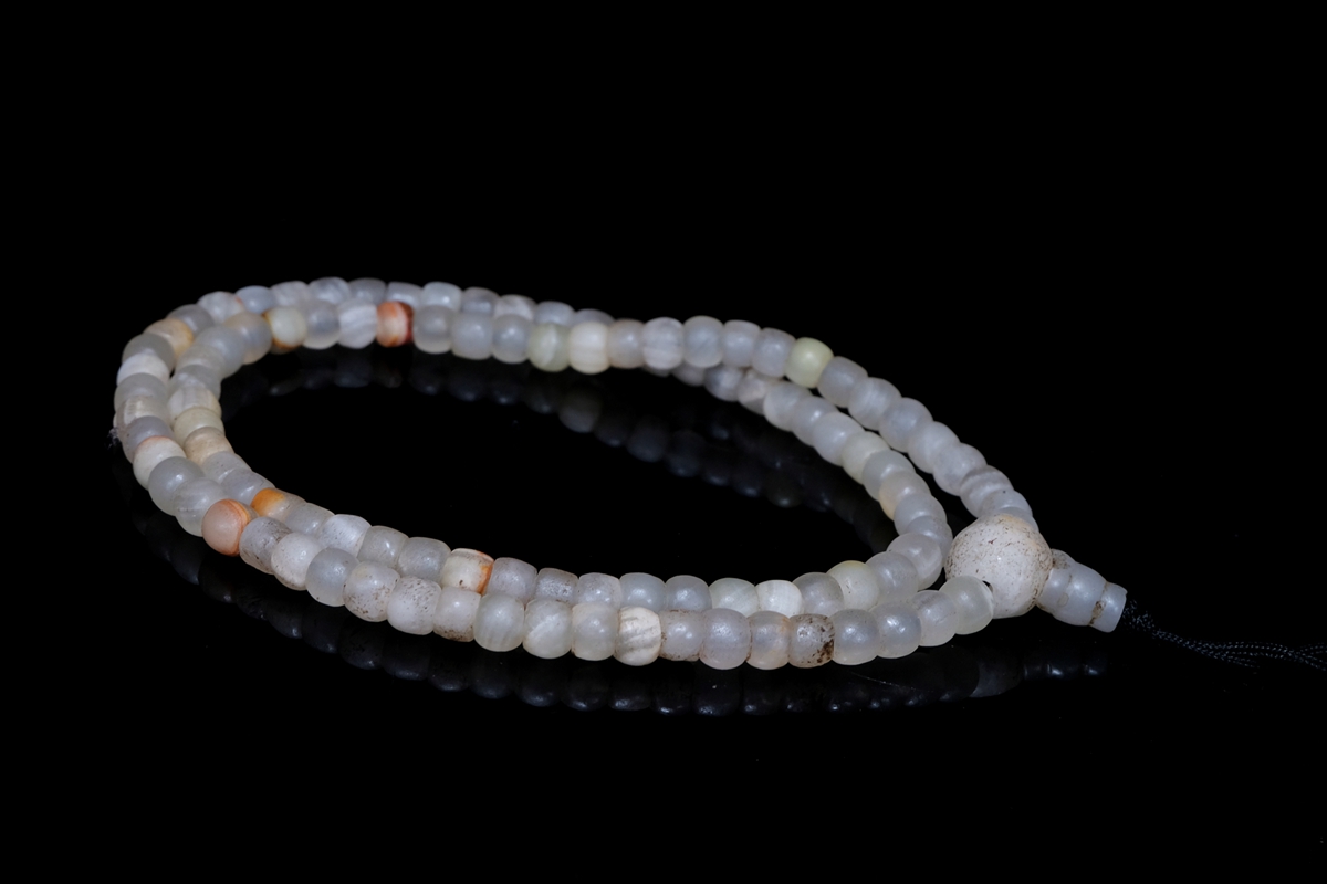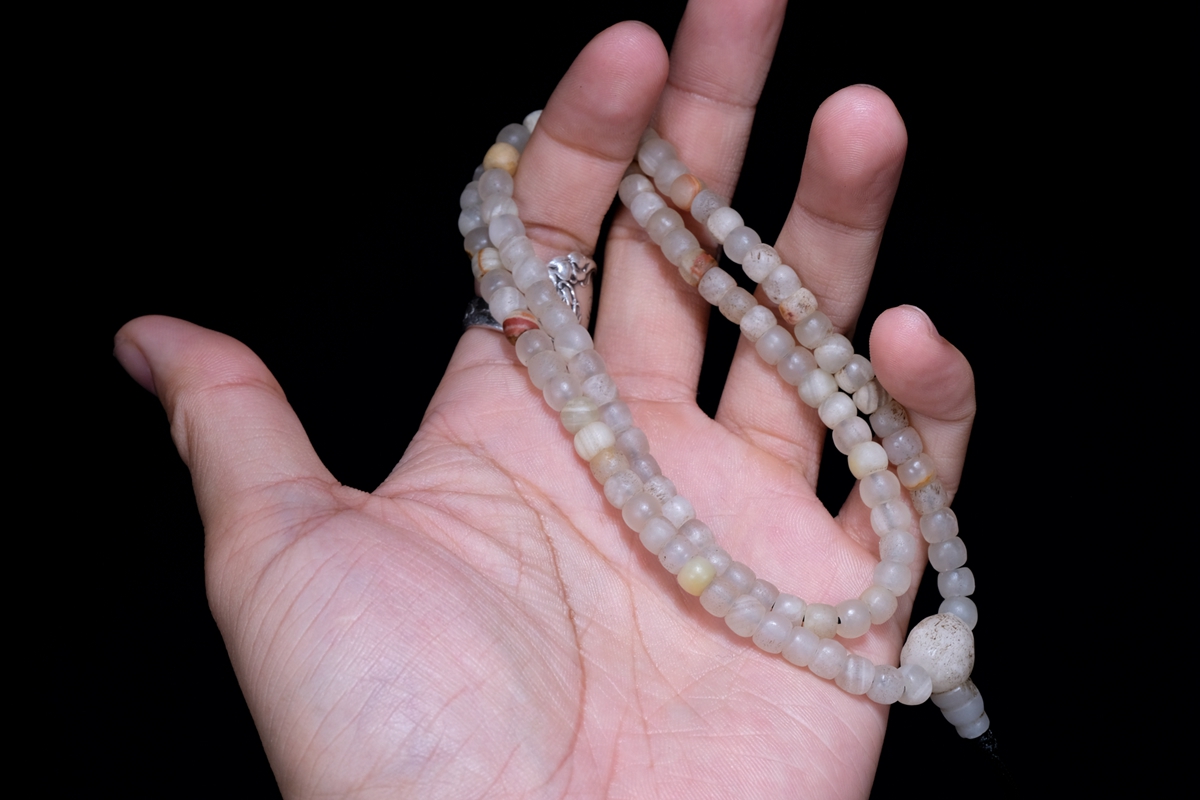 介绍:影舍利不了解的自己可以搜一下,材质就是玛瑙,出现和历代灭佛有比较大的关系,文化价值比材质本身高得多。而且影舍利本身选用的玛瑙材质也都很不错。之前有收到过一条,规整度这条绝对完胜。无论是实物的磨损、风化,还是紫光下的内沁,都绝对开门到代。珠形还是现在很流行的老型质感,也是比较难得的。每一颗都是全品相,无瑕疵,三通也是同料原配。下次再遇到就不知道什么时候了,自己把握吧!