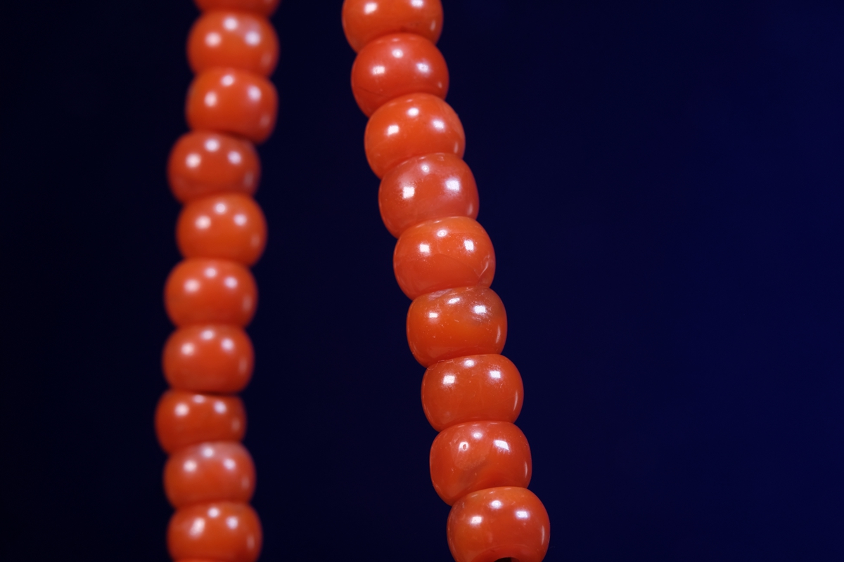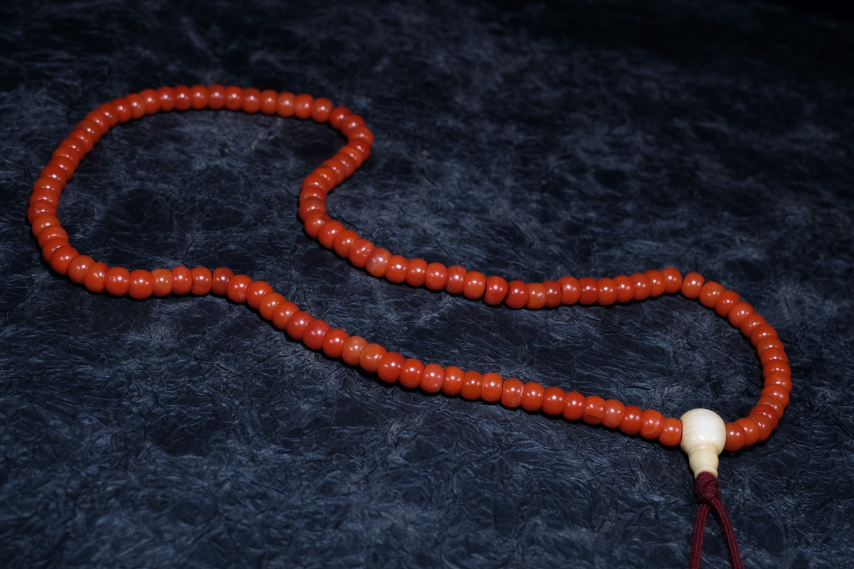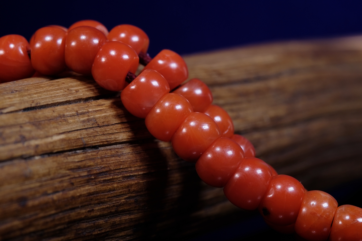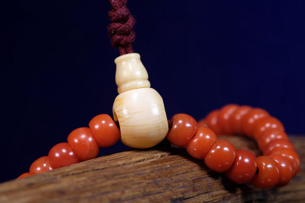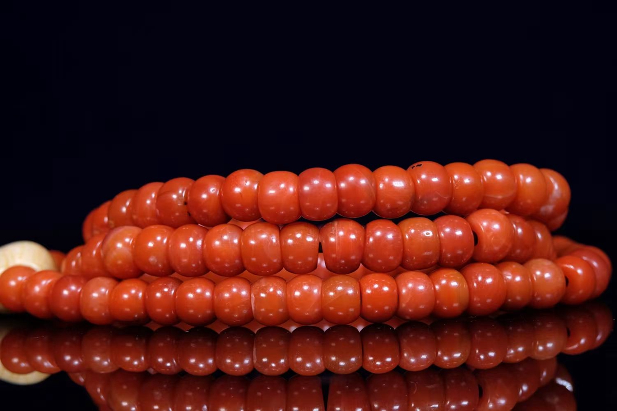 介绍:别说老南红了,就是现在新的保山料,这个颜色和品相也绝对很顶了吧,老南红多裂多白几乎是共识了,这条只有打灯有非常细微的一些裂,表面几乎一点结构都看不到。而且颗颗如此,颜色也是几乎完全统一,嘎嘎带劲!磨损、压痕这些也都一点毛病没有。三通原配牙料,年份不是很大,也是老的。