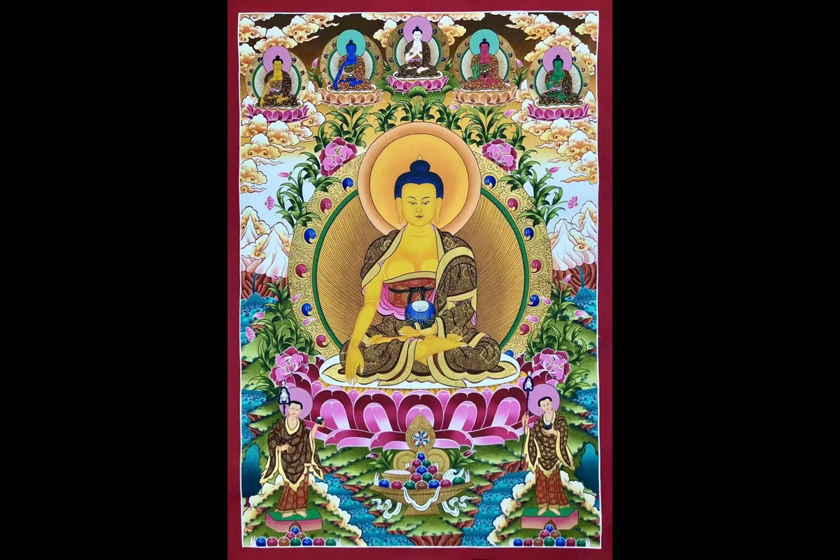 介绍:精品纯金彩唐【释迦牟尼佛】上等矿料,幅面满工丰富,唐卡中人物众多,纯金描线,装裱效果出色,关于精品唐卡的美主要体现在细节,每一笔勾勒每一笔晕染,都值得细细品味,绝非寻常作品可以比拟,高阶大师级的这幅释迦摩尼唐卡,是同类题材里少有可以让人眼前一亮的作品。主尊释迦摩尼开脸绝美,细节完成度非常的高,周围小佛也是描金细腻无比,感恩结缘!【主尊介绍】释迦牟尼佛,原名乔达摩·悉达多,本是古印度迦毗罗卫国的太子,属刹帝利种姓。父为净饭王,母为摩耶夫人。释迦牟尼是佛教创始人,出生于今尼泊尔蓝毗尼,汉地尊称他为佛祖,即“佛教祖师”,他教导众生诸善奉行,诸恶莫作;超脱轮回,成就佛果。