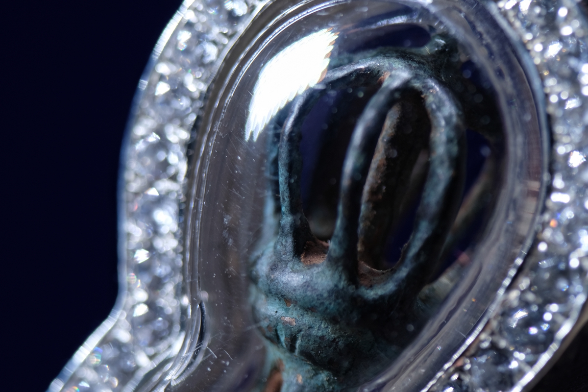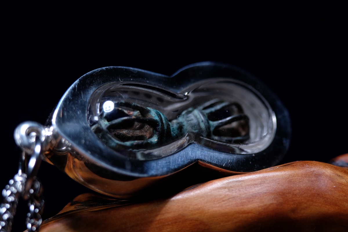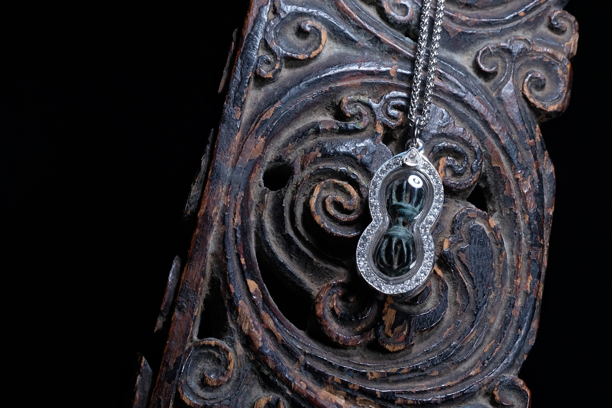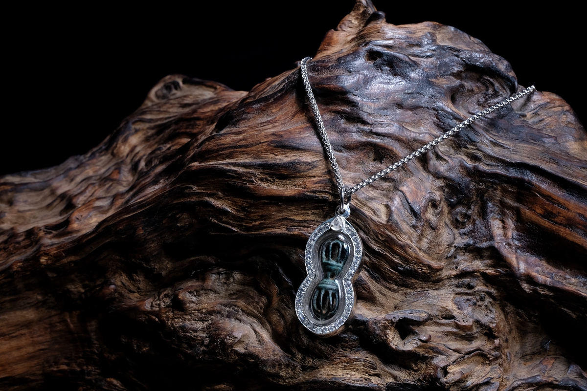 介绍:一眼大开门,极品品相,全品九股金刚杵吊坠,一丁点瑕疵没有,千年传承黑漆股。考虑到材质较脆,为了更好保存和展示,做了防水外壳,925银包边设计,正面满钻效果。独一无二的小杵,加上独一无二的设计,绝对惊艳全场!