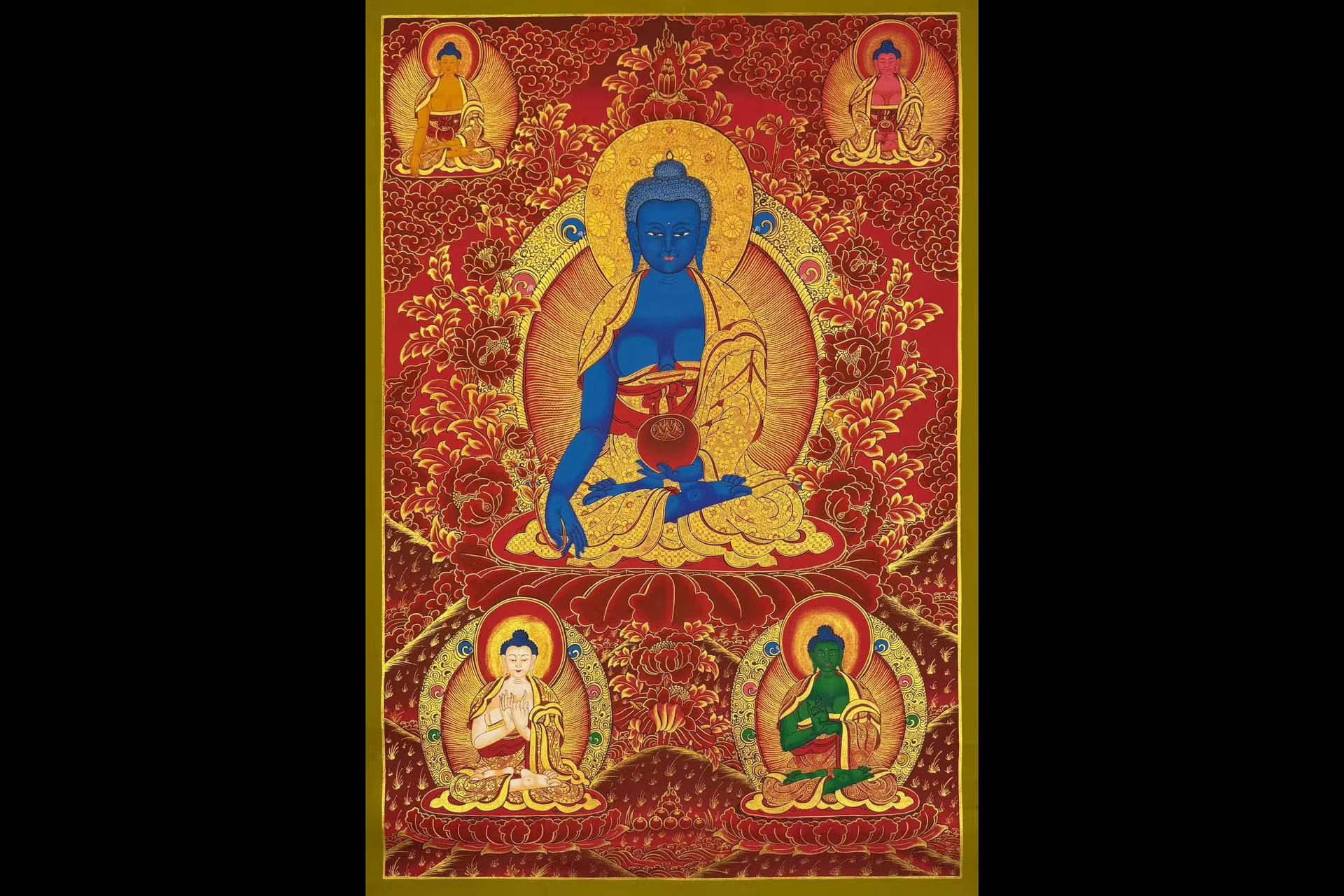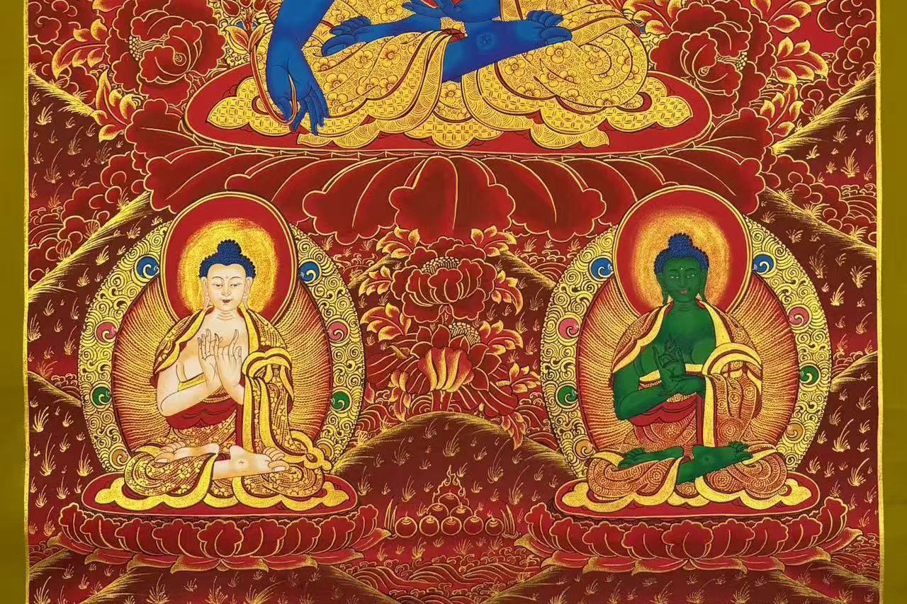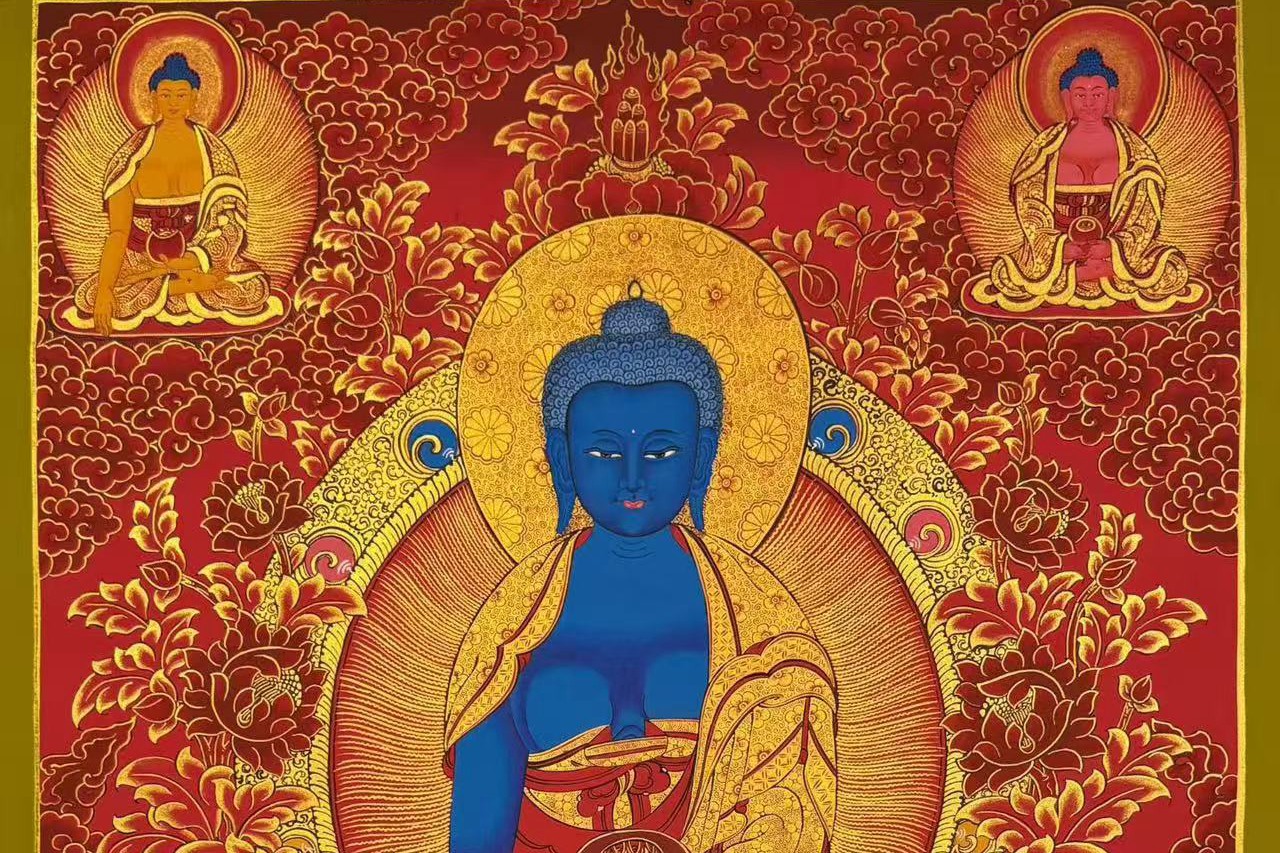 介绍:精品红唐 【药师佛】,尼泊尔画师samirit lama纯手绘 整幅背景红色,吉祥喜庆,布局大气,主尊凸显,线条细腻,开脸庄严殊胜,色彩晕染流畅自然,主尊宝相传神、布图精美、画工细腻[强]主尊药师佛也叫药师琉璃光如来,药师琉璃光如来。能除生死之病,故名药师;能照三有之暗,故云琉璃光。是东方净琉璃世界的教主,率领着日光、月光二菩萨等眷属,在东方净土化导众生!加持庇佑众生远离疾病痛苦,吉祥如意!难得精品,恭请结缘,喜欢的速度哈!