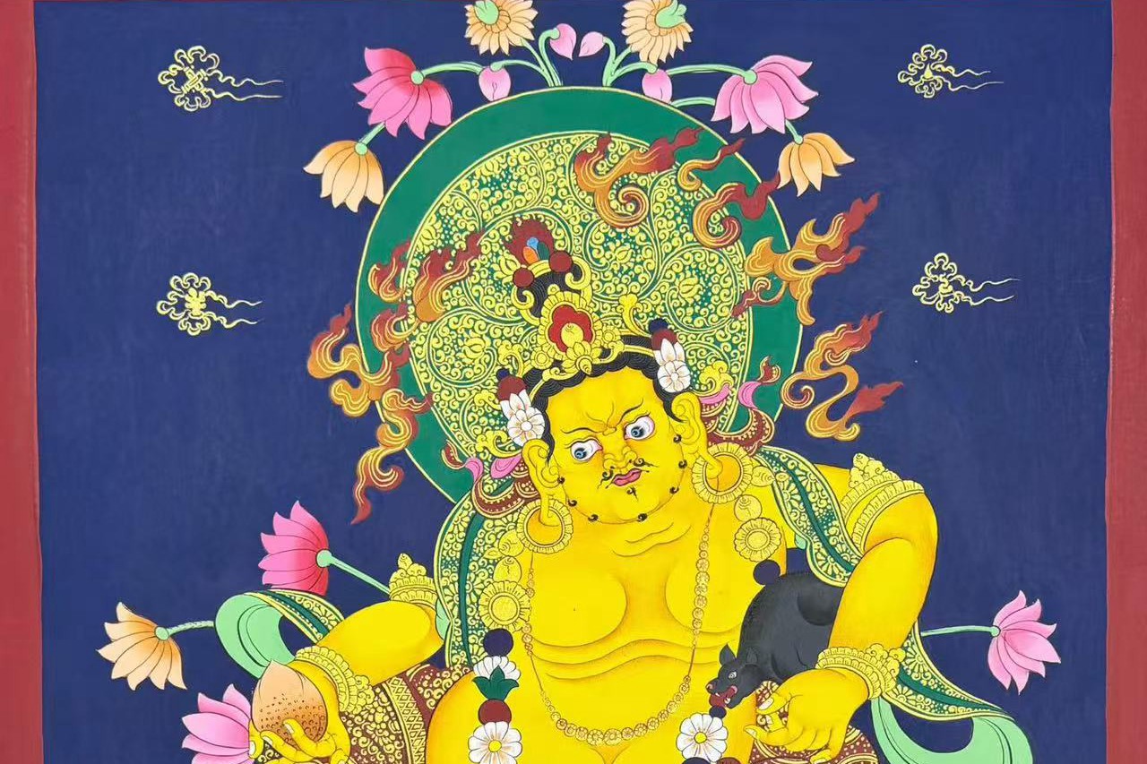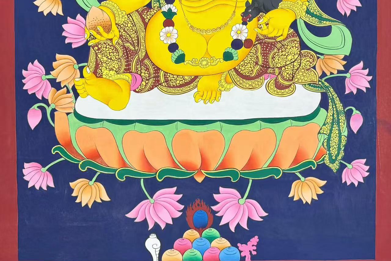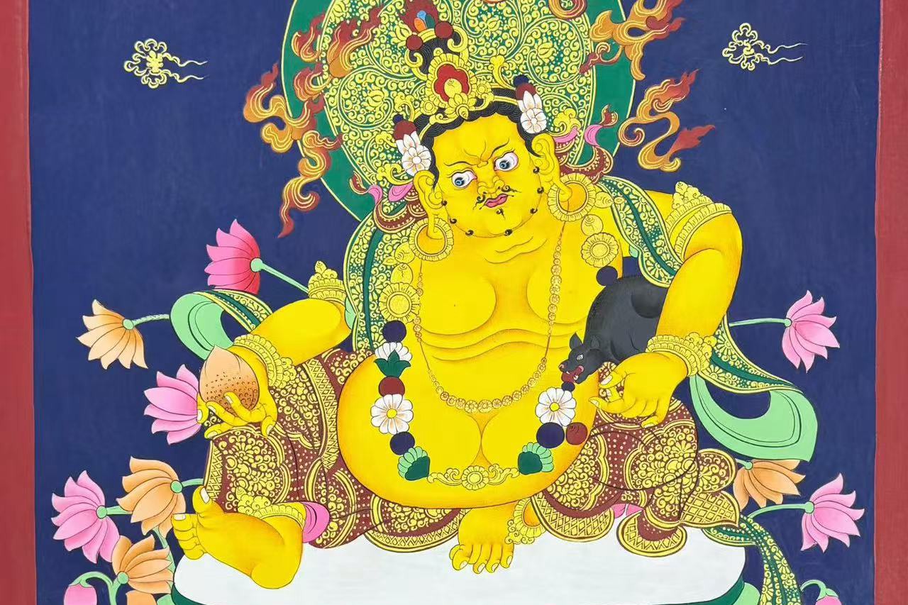 介绍:最新完工,蓝底彩唐《黄财神》洛桑扎西师傅绘制,传统矿植物颜料着色晕染,画工精细,开脸如法庄严,是一副不可多得的收藏级唐卡作品。喜欢的朋友一定不要错过收藏一副。