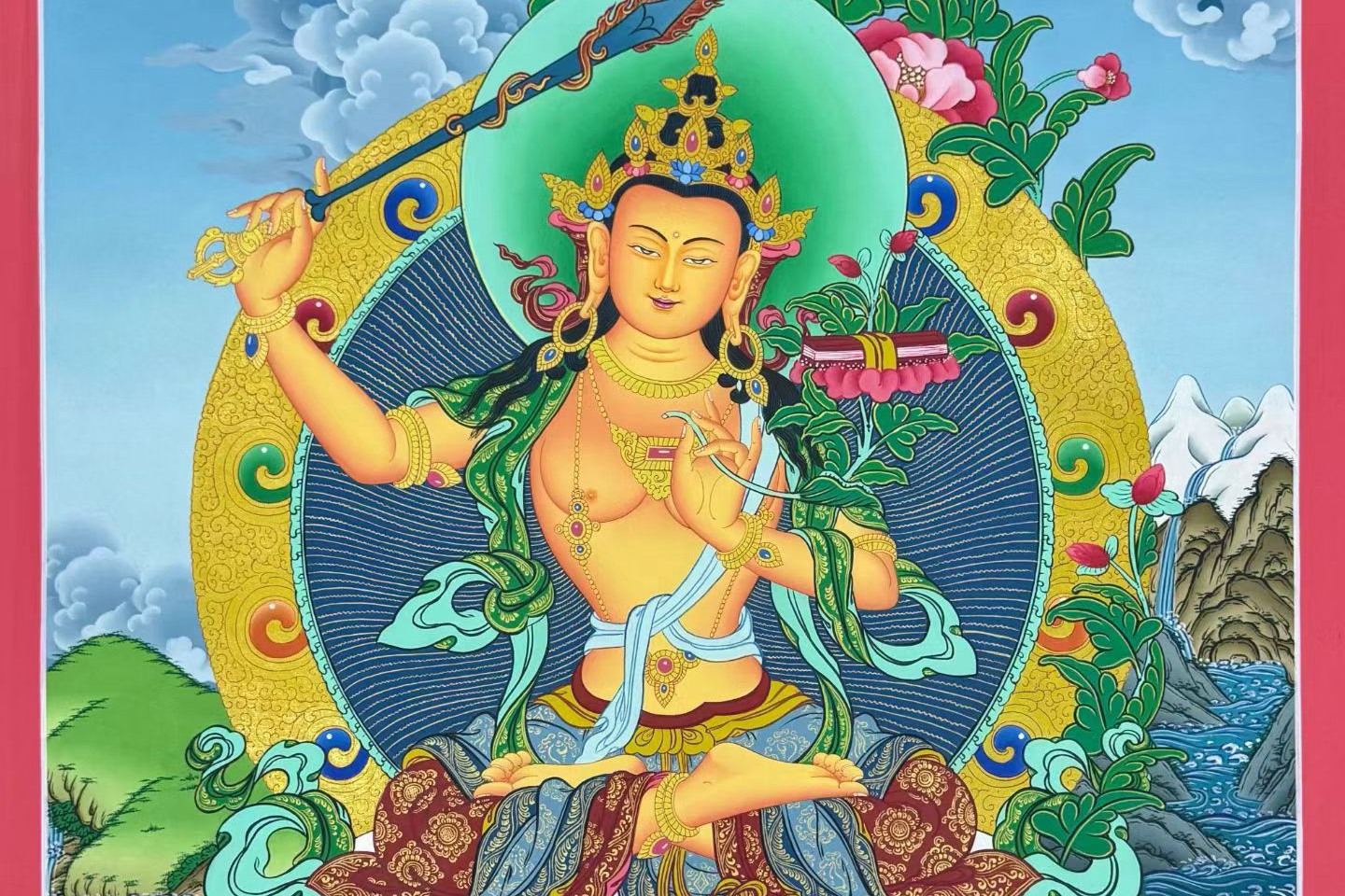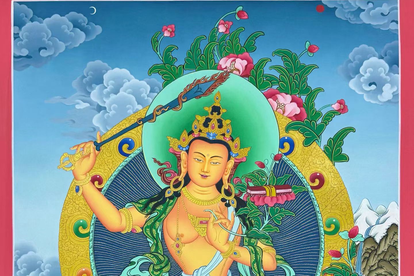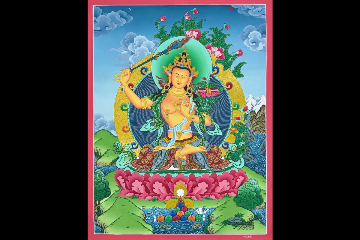 【t1551】唐卡四国赛一等奖获得者扎西索朗亲工手绘《文殊菩萨》