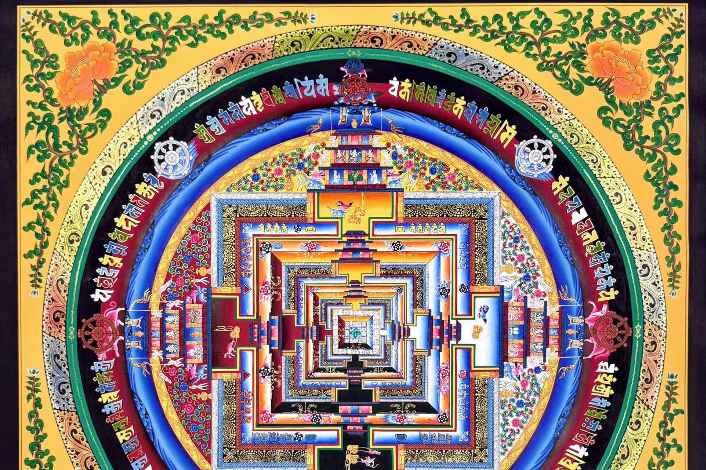 介绍:尼泊尔著名坛城大师Chunmo lama作品【时轮金刚坛城】,纯金描线,矿植物颜料晕染 画工精细,描金扎实,幅面满工丰富,线条细腻横平竖直方圆中规中矩,难得的精品坛城,装裱后更是高端大气。