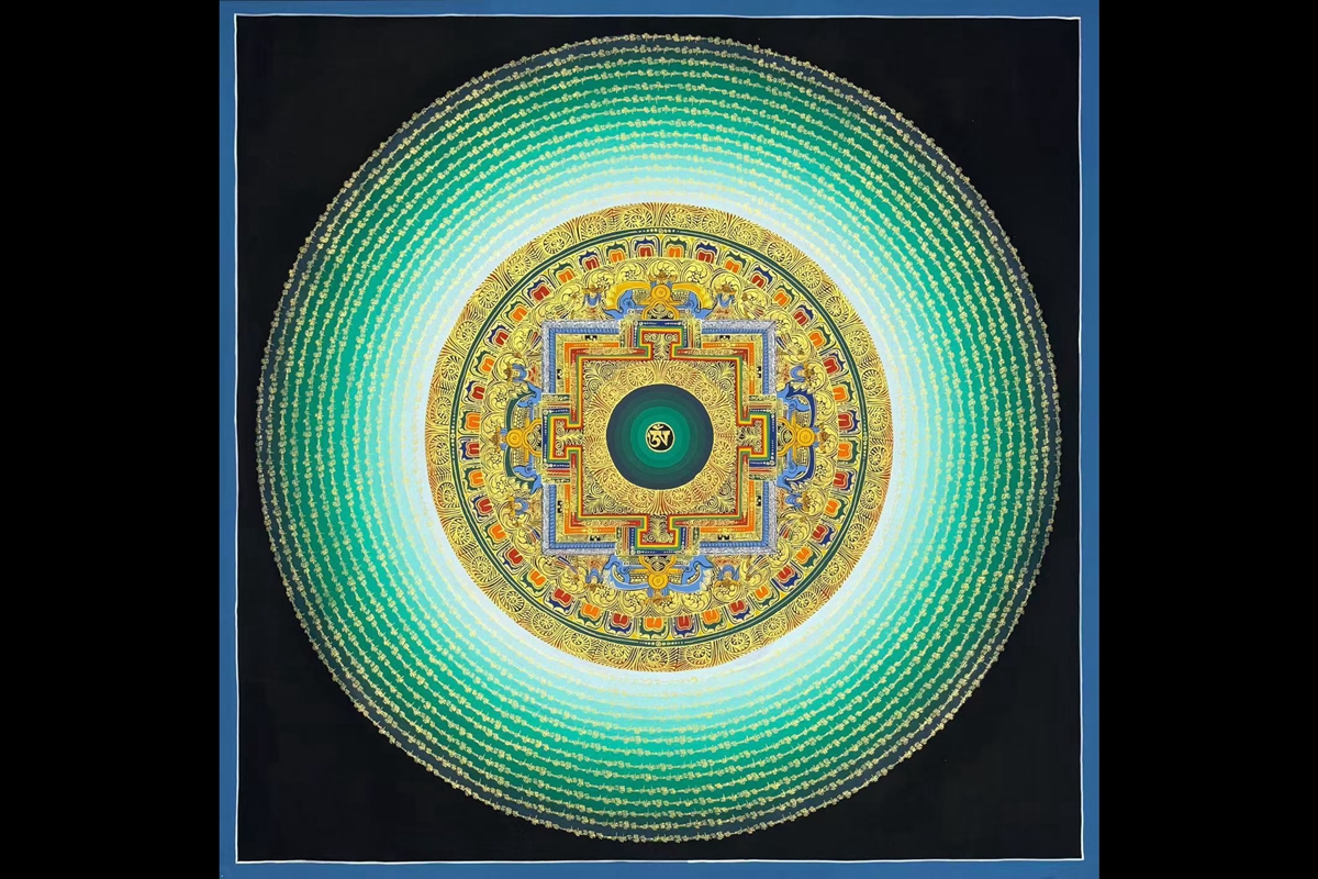 【t1158】清新绿坛城 《六字真言光晕经文坛城》