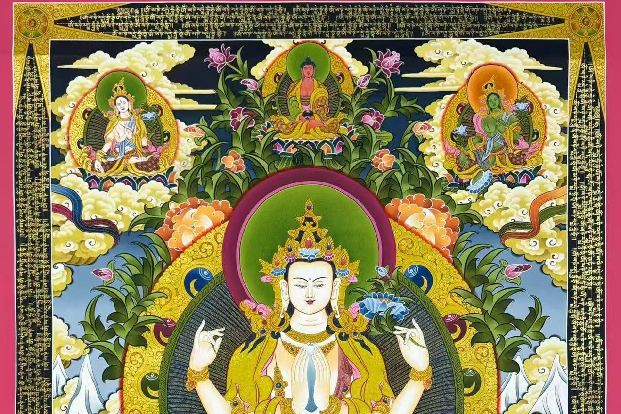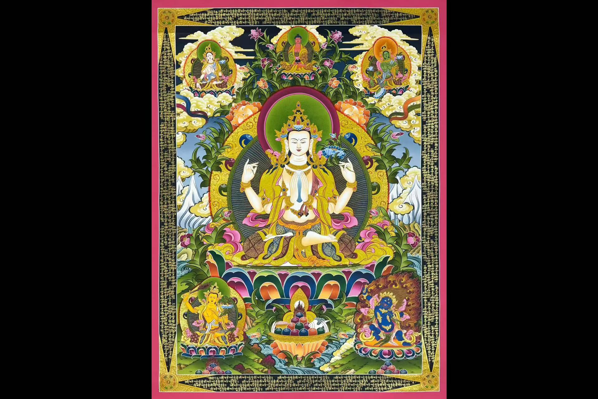 介绍:年底特惠结缘,经文版唐卡【四臂观音】