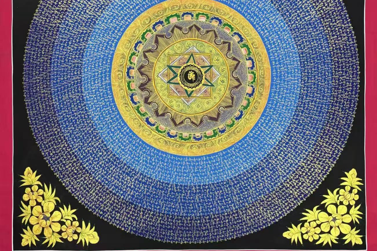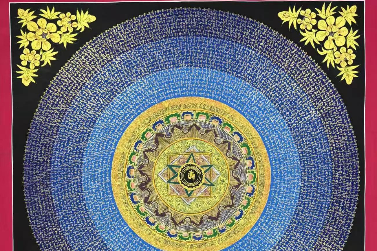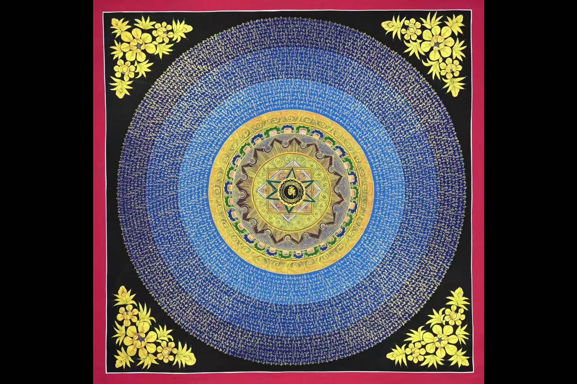 介绍:高性价比坛城【六字真言坛城】 渐变光晕浮写六字真言,书写漂亮,经文流畅,颜色丰富,渐变光圈底衬,描线细如发丝,修行与观赏双重盛宴。