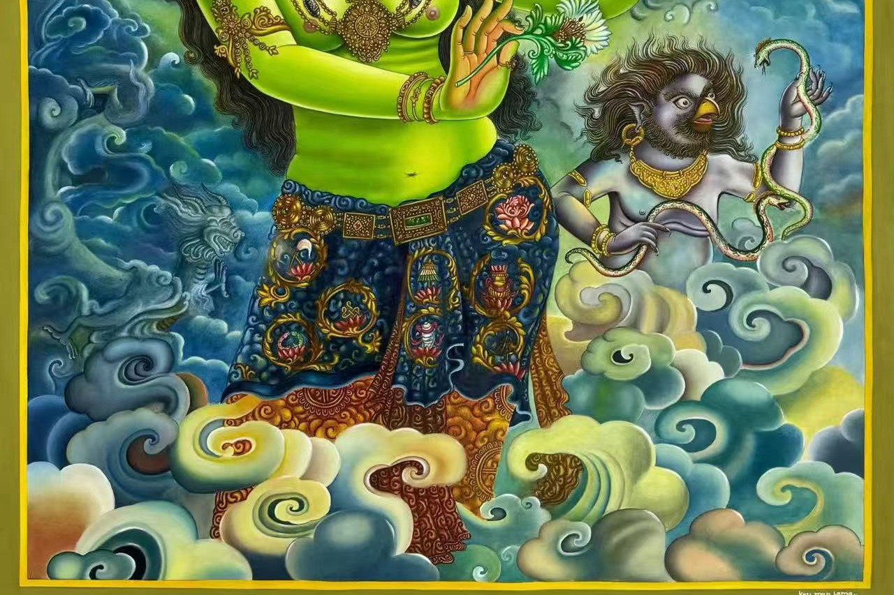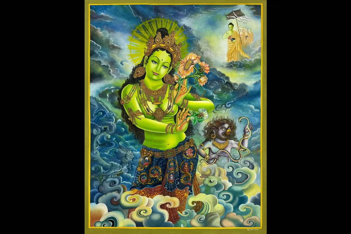 介绍:皇室特供,纽瓦丽唐卡《绿度母》 ,纽瓦丽风格唐卡大师kaji man lama笔尖修行之作,世界唐卡艺术巅峰之作:鼎级收藏级尼瓦尔唐卡。来自世界上最古老的唐卡民族纽瓦力唐卡名家作品,全世界不超过200位画师。采用特殊矿物颜料,纯手绘完成,构图独特,风格唯美,画工细腻,是非常少见的精品,喜欢一定不能错过。纽瓦丽唐卡里比较有标志性的风格,无论人物或花草,都丝丝入扣,精美绝伦!而且素色的唐卡总能给人深邃,神秘,庄严的感觉,